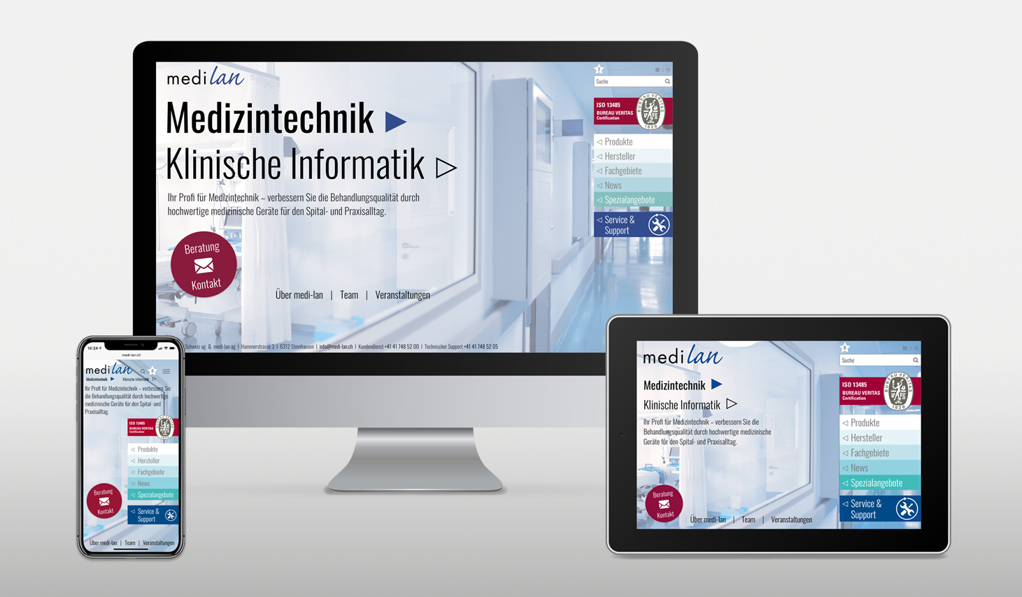 medi-lan beliefert Spitäler und Arztpraxen mit medizinischen Geräten. Die Website ist für das Unternehmen das wichtigste Beratungs- und Verkaufsinstrument. Im Verlauf der Jahre war der Internetauftritt jedoch in die Jahre gekommen. Zudem entsprach er nicht mehr den technischen bzw. gesetzlichen Normen. Deshalb beauftragte medi-lan im März 2019 TOUCHPOINT mit dem Relaunch. Die grosse Herausforderung war die Navigationsstruktur. Diese musste so aufgebaut sein, dass die Anwender in möglichst wenigen Klicks zum Ziel kommen.